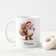 Bring the spirit of Christmas morning to your coffee break! This cheerful design features a classic, smiling Santa Claus holding a brightly wrapped gift bag, ready to deliver holiday cheer. It's the perfect mug for sipping eggnog, coffee, or hot cocoa throughout the festive season.