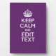 Personalized KEEP CALM AND Your Text on Purple Plaque
