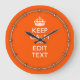 Personalized KEEP CALM Your Text Orange Accent Large Clock