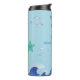 This personalized kids water bottle is the perfect companion for your child's school days, outdoor adventures, or nursery time. Featuring a fun ocean theme, the bottle is fully customizable with your child's name for a unique and personal touch. The soft aqua blue background creates a calm and refreshing vibe, while the durable design ensures the bottle can handle daily use.