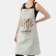 Personalized kitchen utensils apron designed for durability, style, and comfort. This cooking gift for anyone features styled green leaves, whisk, spoon, and baking rolling pin. All elements can be personalized with your own text, name, etc., including the pale eggshell background color of the apron can be changed to whatever color you prefer or remove it entirely.