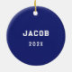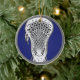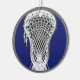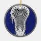 Lacrosse player award or unique Christmas ornament, graduation gift or senior night keepsake featuring lax stick illustration on blue background. Edit text to add player's name and year.