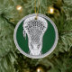Unique lacrosse sports award or gift ornament featuring lax stick on green background. Edit text to add name of player and the year.