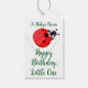 A sweet personalized birthday gift tag featuring a charming ladybug design.