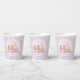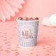 Celebrate your little one’s first birthday with these adorable lavender gingham paper cups featuring a soft watercolor illustration of classic baby toys — teddy bear, giraffe, bunny, duck, and pastel blocks. The gentle lavender tones and gingham pattern create a cozy, timeless look that’s perfect for a baby girl’s or boy’s milestone celebration. Personalize the cup with your child’s name to make the party table even more special and memorable.