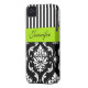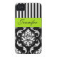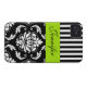 PERSONALIZED LIME GREEN, BLACK DAMASK STRIPED Case-Mate iPhone CASE