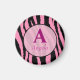 personalized magnet with your name on it and your front letter of your name, and it strips with pink and black stripes