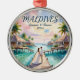 Celebrate your romantic island getaway with this Custom Watercolor Maldives Keepsake Ornament. Featuring a vibrant, hand-painted style illustration of a couple standing on a tropical pier surrounded by iconic overwater bungalows, this elegant metal ornament captures the magic of a paradise vacation.