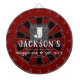 Faux wooden background with monogram and family name in center of the board. Other colors available in the shop. This fun template lets you create your own personalized man cave "your name" whiskey or bbq backyard bar dart board sign. Unique fun gift