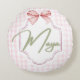 Personalized Maya Baby Girl Nursery Bow&Gingham Round Cushion