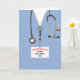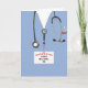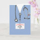 Creative medical school graduation card for doctor, featuring hospital scrubs and funny Swiss Army knife in the pocket. Edit text to add physician's name.