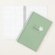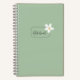 A soft green minimalist notebook with a delicate white flower accent — perfect for journaling, notes, or as a thoughtful gift. Available in four shapes: 5.5"x8.5", 8.5"x11", 8.5"x8.5", and a heart-shaped spiral design. Fully personalized to make it truly yours or a special custom present.