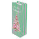 Personalized Mint Green Pink Stripe Christmas Tree Wine Gift Bag