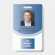 Professional business badge for your medical staff, business staff or employees. Personalize with name, employee id, business logo, bar code or other information. Modern business blue colored modern design. Information on back and front of this vertical badge.