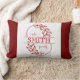 Elevate your home decor with this elegant and timeless personalized family name throw pillow. Featuring a chic deep red and white color palette, this design showcases a delicate botanical wreath surrounding your custom surname in a sophisticated serif font.