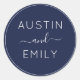 Personalized Modern Navy Blue Wedding Classic Round Sticker