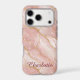 Personalized Modern Rose Quartz Marble Gold iPhone 17 Pro Case