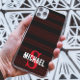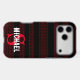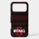 Featuring a bold red and black striped pattern with a textured Racing sporty aesthetic, this design is perfect for those who want a modern and professional look. Use the easy Zazzle template personalize it button to change the large 'S' monogram and the 'MICHAEL' name to your own.