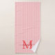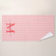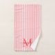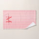 Add a touch of elegance to your bathroom with this personalized monogram bath towel set. Featuring a soft red and white striped background, each towel is customized with your monogram initial and name in a fancy script font for a timeless, feminine look.