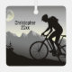 This holiday Christmas tree ornament features a silhouette mountain biker biking with a full moon mountain scene background. It can be personalized with a name, year or any text that you wish to add. -
