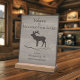 Welcome guests in style with this personalized mountain lodge guest Wi-Fi sign, featuring a classic elk silhouette and warm wood-grain texture. Designed to blend seamlessly with rustic cabin and lodge décor, this freestanding sign offers a beautiful way to share your network details while elevating your entryway, kitchen, or desk.
