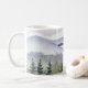A great gift for someone who lives in or longs for the mountains. A personalized mug with a watercolor mountain theme. A scenic and artistic natural view that would be a great gift for someone who lives in the mountains or loves this type of terrain. Design by Night Owl's Menagerie, Copyright 2025.