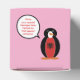 Ms. Penguin visits Albania wearing a vest with the Albanian flag to celebrate cultural pride, heritage, and ancestry. She joins birthdays, retirement parties, and family reunions, as well as Penguin Awareness Day (Jan 20) and World Penguin Day (Apr 25). Add your message in her speech bubble on this personalized heart cut‑out favor box for parties.