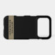 Elegant stylish manly personalized customized iPhone case with name, monogram initial letters or a text at your wish. Unique aesthetic black neutral premium look, monochrome monochromatic with classy black typography in editorial style on a golden background, a thick antique gold color block, suitable for a gentleman’s personal or business professional use, or at home office. Also great custom thoughtful gift idea under 30 dollars for him.. For a coworker, a boss, a colleague, a friend or a family member, a dad, a brother , a grandfather , uncle etc. Appropriate for many occasions and celebrations, like birthday, Father’s Day, Christmas, graduation, anniversaries even retirement etc. A fashionable electronic tech accessory to protect his cellphone.