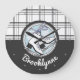 Personalized Name Modern Tartan Ice Skate Large Clock