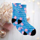 These blue socks have pink bubbles that create that perky fun look. Make these socks your own. Personalized it by using your own name and click the customize button and change the color to what you want. Got roommates or children? They will never steal your socks again. Perfect for any occasion that you need a small gift: Fathers Day, Mothers Day, Christmas, Birthdays and Graduations.