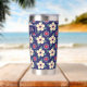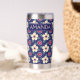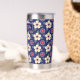 Enjoy your favorite hot or cold drinks in elegant style with this personalized thermal tumbler featuring a deep navy blue background and soft cream floral pattern. Customize it with a name or initials to create a unique, practical accessory for everyday use. Designed to help maintain beverage temperature, this tumbler is perfect for coffee on the go, tea at work, or refreshing drinks while traveling. A beautiful blend of function and timeless botanical design, it also makes a thoughtful gift for birthdays, holidays, weddings, or housewarmings.