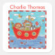 This beautiful print of a pen and watercolour illustration by Helen McCartney Designs features a group of sweet animals huddled together aboard Noah's Ark.