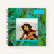 Cute, square, palm fronds sketch pad, or journal, has two places for personalization. Upload a photo, and include three initial monogram in the upper corner. The square size frame, in aqua blue and green, will accommodate a photo of any orientation with the subject in the center. Artwork could also be added, and this book makes a nice gift for the budding artist. The pages can be changed to lined, recipe, and more. See the options in the sidebar.