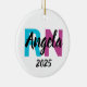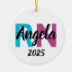 This personalized ceramic Christmas ornament is the perfect gift for a graduating nurse, newly licensed RN, or Nurse Practitioner. Featuring bold teal and pink RN or NP letters, your custom name in elegant script, and the graduation year 2025, this ornament makes a meaningful way to honor hard work and dedication.