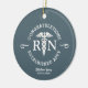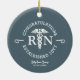 Personalized Nursing School Graduate Keepsake Ceramic Ornament is perfect for a student nurse graduating. It has a modern design with customizable dusty blue background and white caduceus symbol with "RN" on the center. The text "congratulations" is curved over the symbol and the established year. Name is in trendy calligraphy script lettering followed by school or college name.