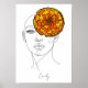 The design features a minimalist line-art face crowned with a magnificent marigold—the birth flower of October representing passion, creativity, and positive energy. The flowing one-line illustration style creates modern elegance, while the vibrant orange and golden yellow petals add warmth and autumn beauty.