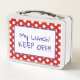 This is a standard metal lunchbox that appears to work just fine. We designed this box ourselves with an uploaded photo and custom text on the front and back. It looks absolutely beautiful except the front of the lunchbox is not centered like it shows in the photo. The print borders don't align with the inset flat part of the box where the preview photo online showed it perfectly centered in there. The back looks nice and centered though.