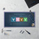 Transform your workspace into a scientific sanctuary with this unique, personalized desk mat. The design features a cool, blueprint-style Periodic Table of Elements background. The highlight is the ability to customize the large central tiles to spell out any name using elemental symbols—just like the "V-V-V-V" (Vanadium) example shown! You can further personalize it by uploading your own photo into the circular frame in the corner. This large gaming mousepad provides ample space for your keyboard and mouse, making it perfect for students, teachers, scientists, gamers, or anyone who loves chemistry. It makes a brilliant and thoughtful STEM gift.