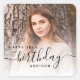 Celebrate her 18th birthday in style with these modern birthday party stickers featuring a custom photo. Easily replace the sample image with a photo of the guest of honor. The word "birthday" appears in elegant black handwriting script. Personalize the text with the name and birthday year in black sans serif font. A white gradient overlay helps make the text pop.