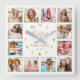 Personalized Photo Collage Besties Gold White Square Wall Clock
