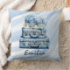 Set against a soft, watercolor-style blue and white striped background, this pillow is the perfect gift for a nursery, a travel lover, or anyone who appreciates a shabby chic aesthetic. Easily customize it with your name and initial to create a unique decorative piece.