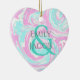 Personalized Pink and Teal Heart Christmas Ceramic Tree Decoration
