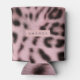 Personalized Pink Faux Fur Leopard Print Can Cooler