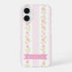 Personalized pink feminine coquette floral striped iPhone 16 case