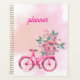 A soft pink watercolor planner featuring a floral bicycle design with a clean, aesthetic layout.
