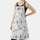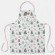 This charming apron features a modern and whimsical Christmas pattern of evergreen trees, festive foliage, and snowflakes in a beautiful, muted color palette of soft pink and various shades of green.