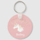 This product design features a contemporary unicorn illustration with bubbles and the word, Magical. The mythological animal illustration in white and light rose pink makes an elegant modern and unique keychain with personalized text.