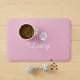 Keep your floors clean and your pet’s feeding station stylish with this custom pink pet mat. Made from soft, absorbent material, it features a beautiful minimalist design with white paw prints and a personalized name in flowing script. This mat prevents bowls from sliding and catches spills, making cleanup a breeze. Its vibrant pink hue and elegant customization make it a standout accessory for any modern kitchen or laundry room. Pair it with matching bowls for the ultimate coordinated look for your pet.