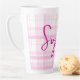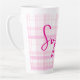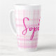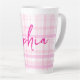 Cute pink plaid latte mug with a custom name. Perfect for coffee, tea, and aesthetic daily drinkware.