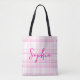 Personalized Pink Plaid Name Tote Bag